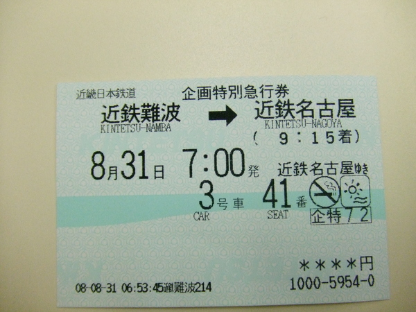 7:00從難波出發9:1X到名古屋